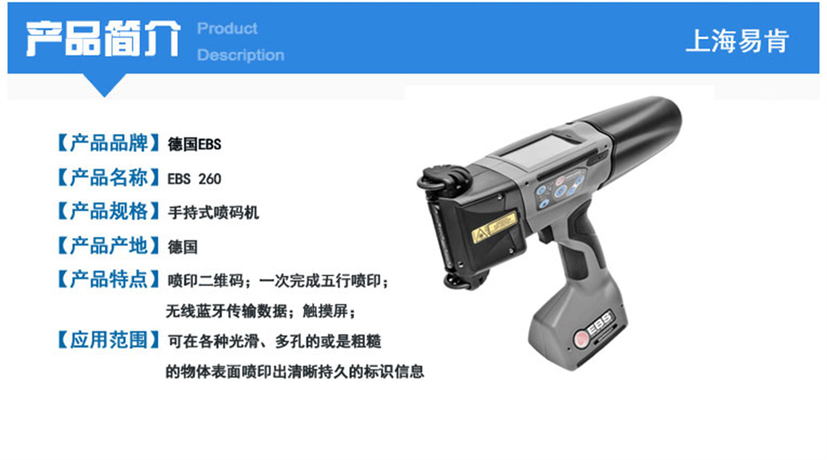 EBS-260是工業(yè)4.0德國(guó)新一代智能便攜手持噴碼機(jī),采用超大尺寸的加硬觸摸屏,噴印編輯一體,無需添加外設(shè)設(shè)備,可直接編輯、調(diào)整噴印內(nèi)容以及重要參數(shù),從而達(dá)到滿意的噴印效果。